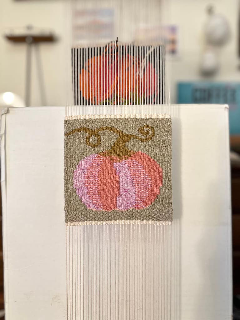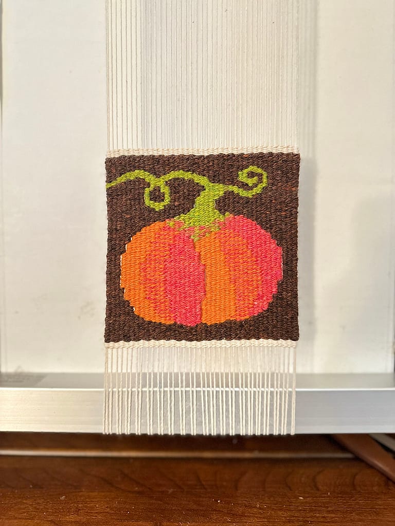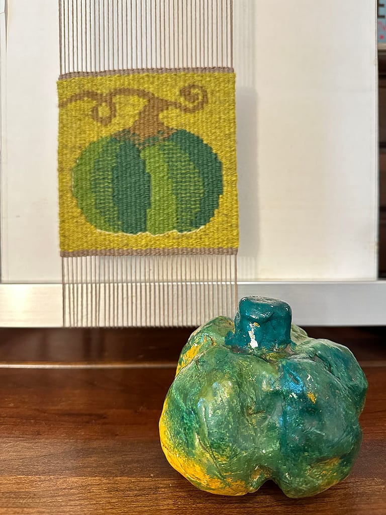 今年のハロウィンに向けて、かぼちゃをテーマにした手織りのプロジェクトをスタートしました。何カ月も前から、「ハロウィン前にこのデザインを完成させよう!」と心に決めていたものの、机の上にスケッチを置きっぱなしにして、なかなか手をつけられずにいました。しかし、ようやく重い腰を上げ、プロジェクトを再始動しました。