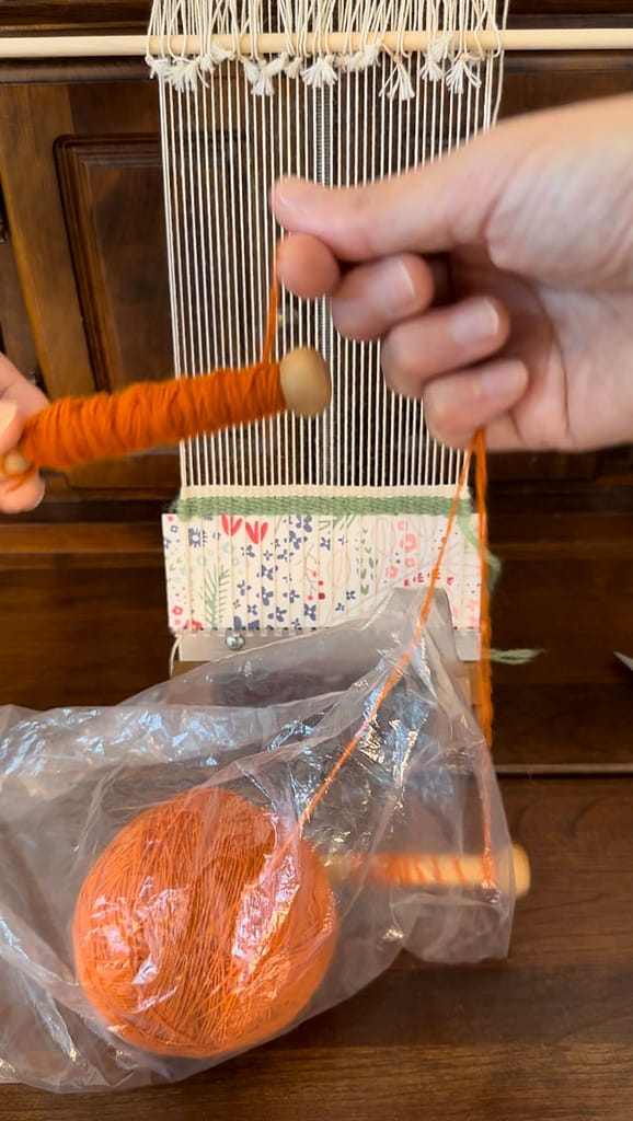 When using fine weft yarns, you may have to make several strands to weave.