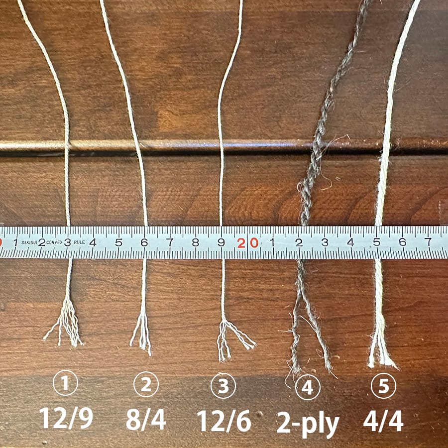 Warp #3 is a 12/6 cotton warp, twisted with 6 strands of threads with a thickness of 12.