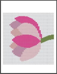 下の図にあるように、花びら一枚一枚の模様の境目で、ヨコ糸の折り返し地点が発生します。オレンジの縦線をつけた部分が偶数段となっている点に注目してください。