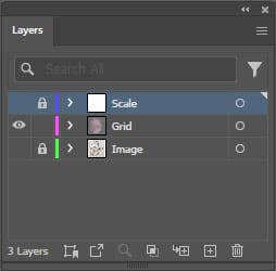 レイヤーパネルで目盛レイヤーとイメージレイヤーの左横にある目のアイコンをクリックして、レイヤーを非表示にします。